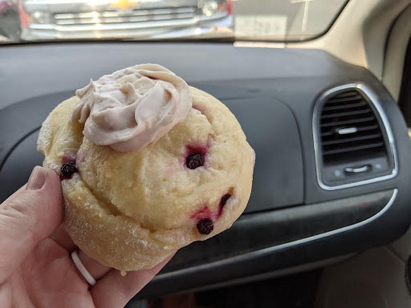 We got some super yummy huckleberry sweet rolls that I would highly recommend if you get the chance to try them.